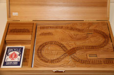 As something very unique we have a crib board with a train track design that is just the ultimate in crib boards.